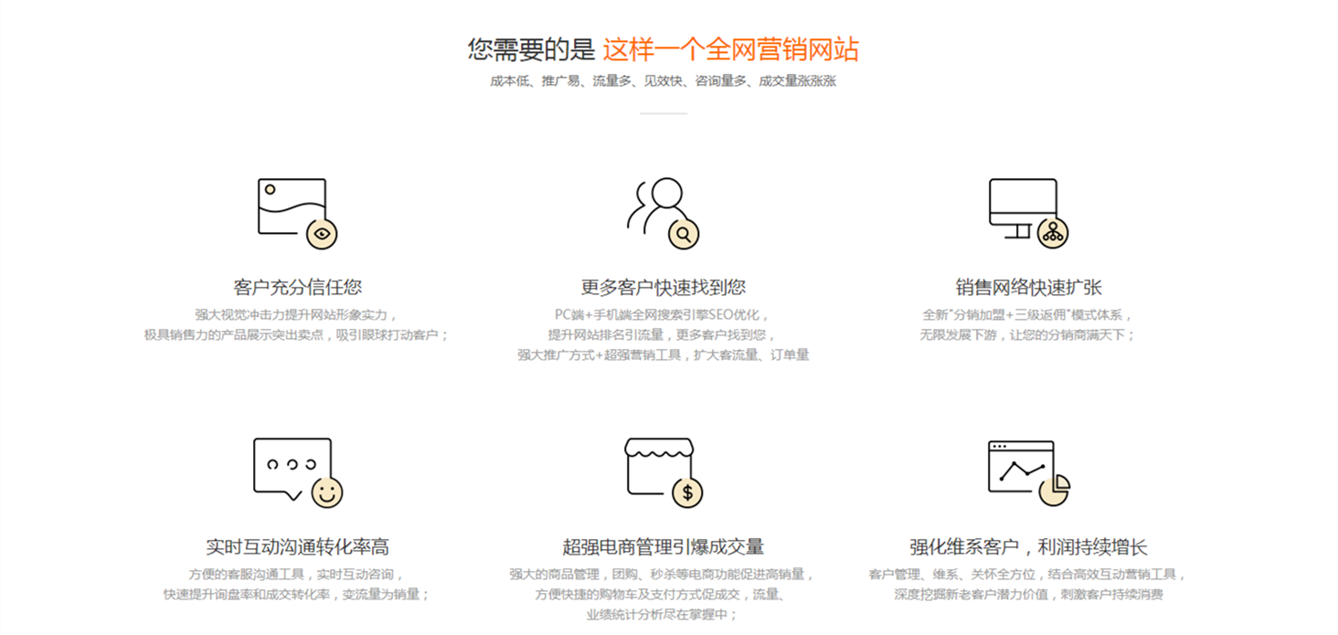 品牌实力性价比高自主开发响应式建站,PC+手机+微信网站+小程序+APP五站合一,一键生成,触手可及